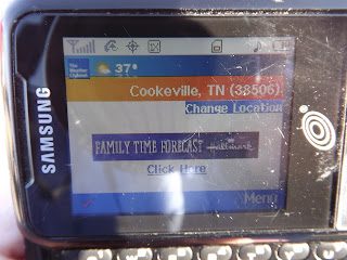 . . .and Thomas ran again -- his third race in as many months! Does he look cold? He should. . .this is what my phone said about our weather: