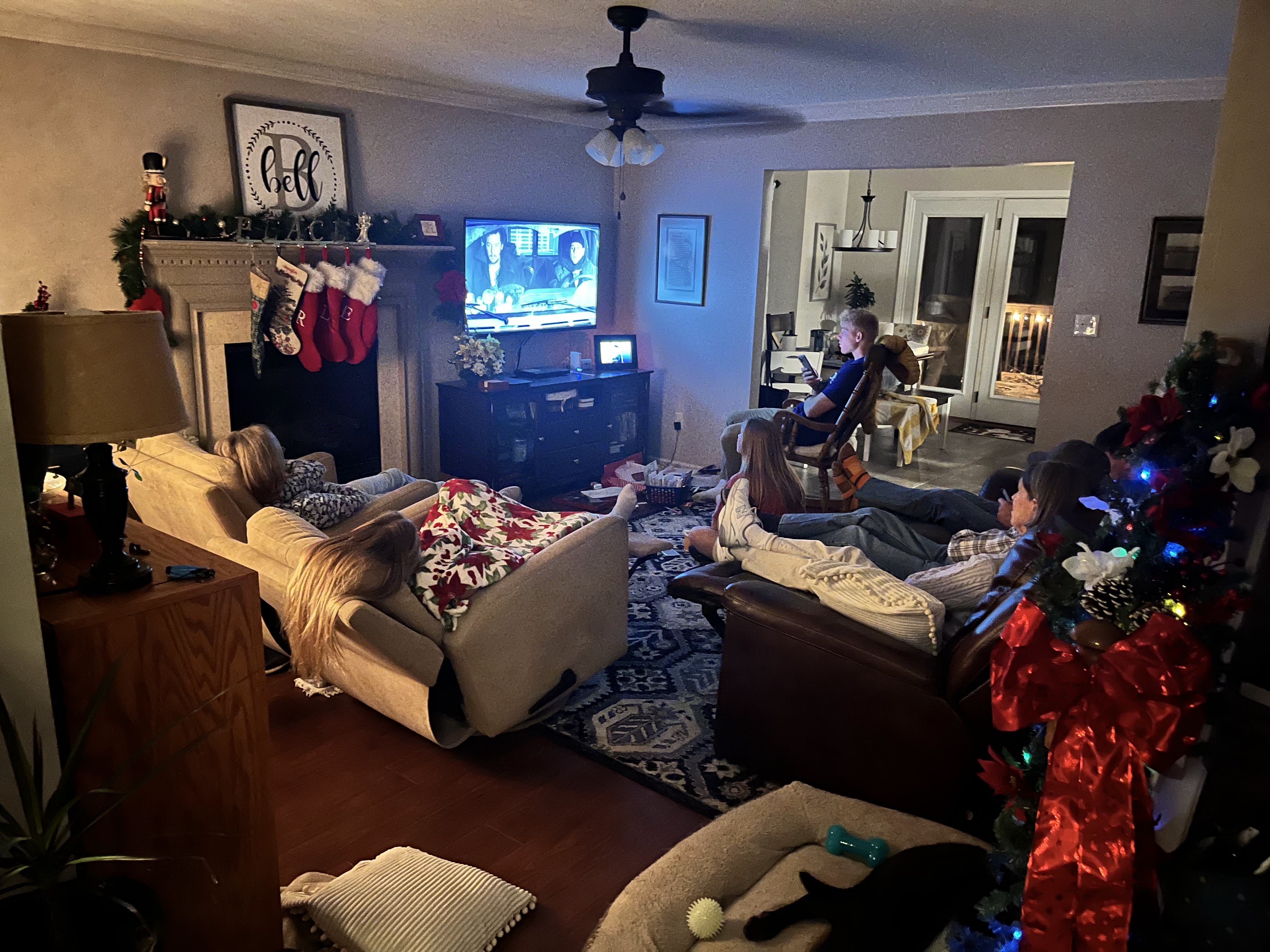 The morning was slow. . .we had breakfast casserole and got the doggie out. . .then I spent most of the rest of the morning in the kitchen preparing items for our celebration with the Maxwells after church. Tom stayed up on the dishes with all the meals - so thankful!! We went to the 2:30 p.m. Christmas Eve service then headed down the street for appetizers and desserts afterwards.